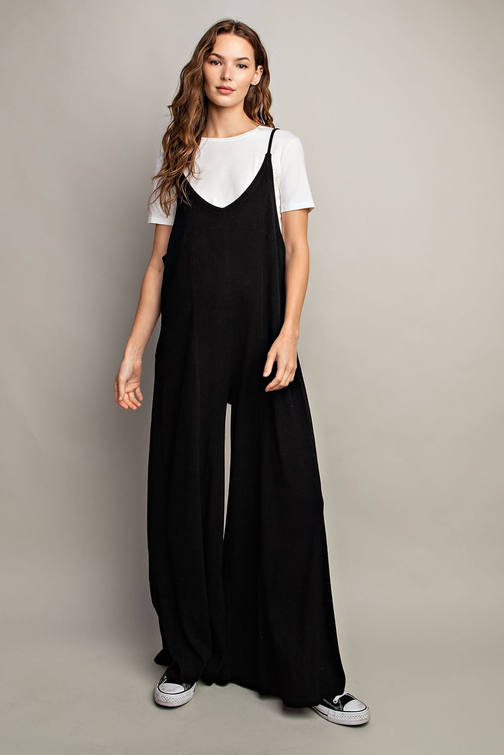 An effortless one-and-done piece that feels as good as it looks. This ribbed jumpsuit is flattering, comfortable, and easy to dress up or down—perfect for slow mornings, coffee runs, or casual days out.