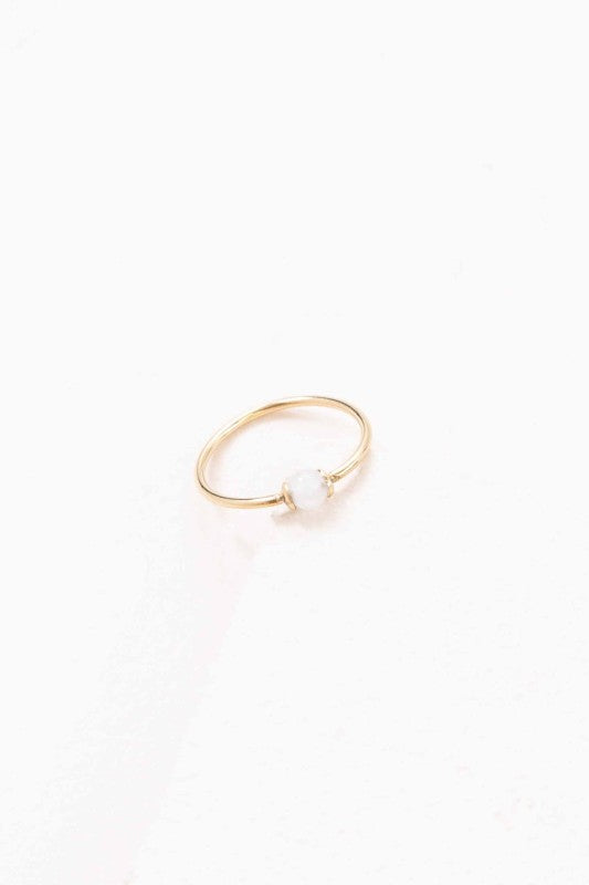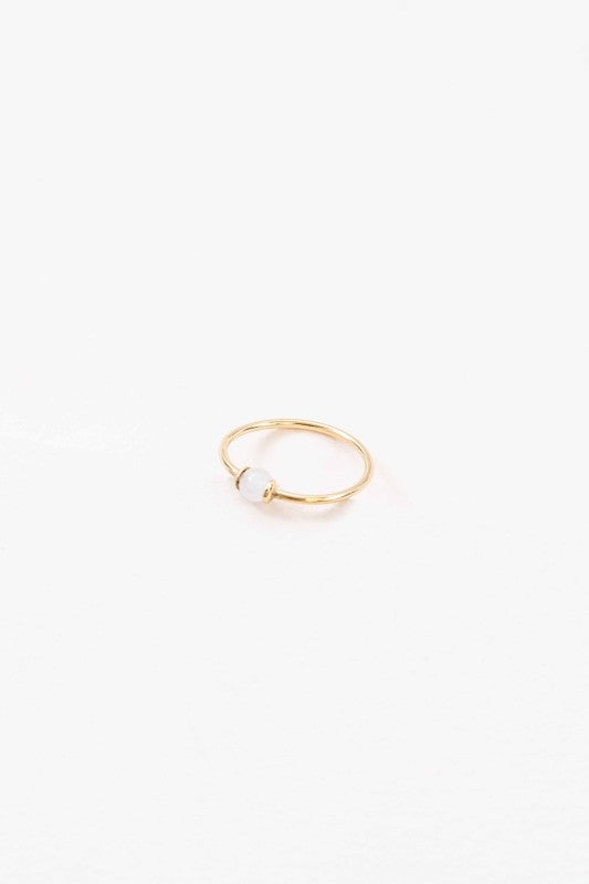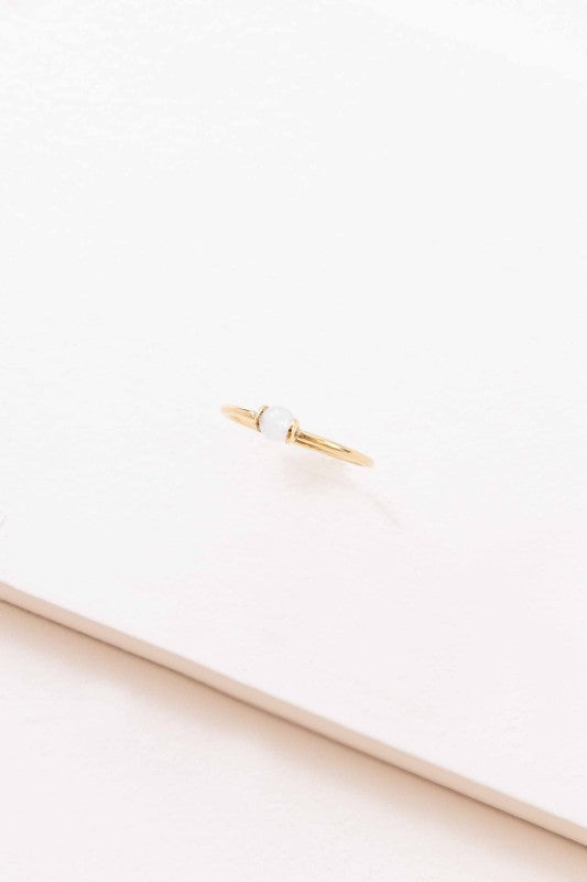 For all your minimalistic needs, but with a pop of color! A thin gold band with a white circle stone on top.